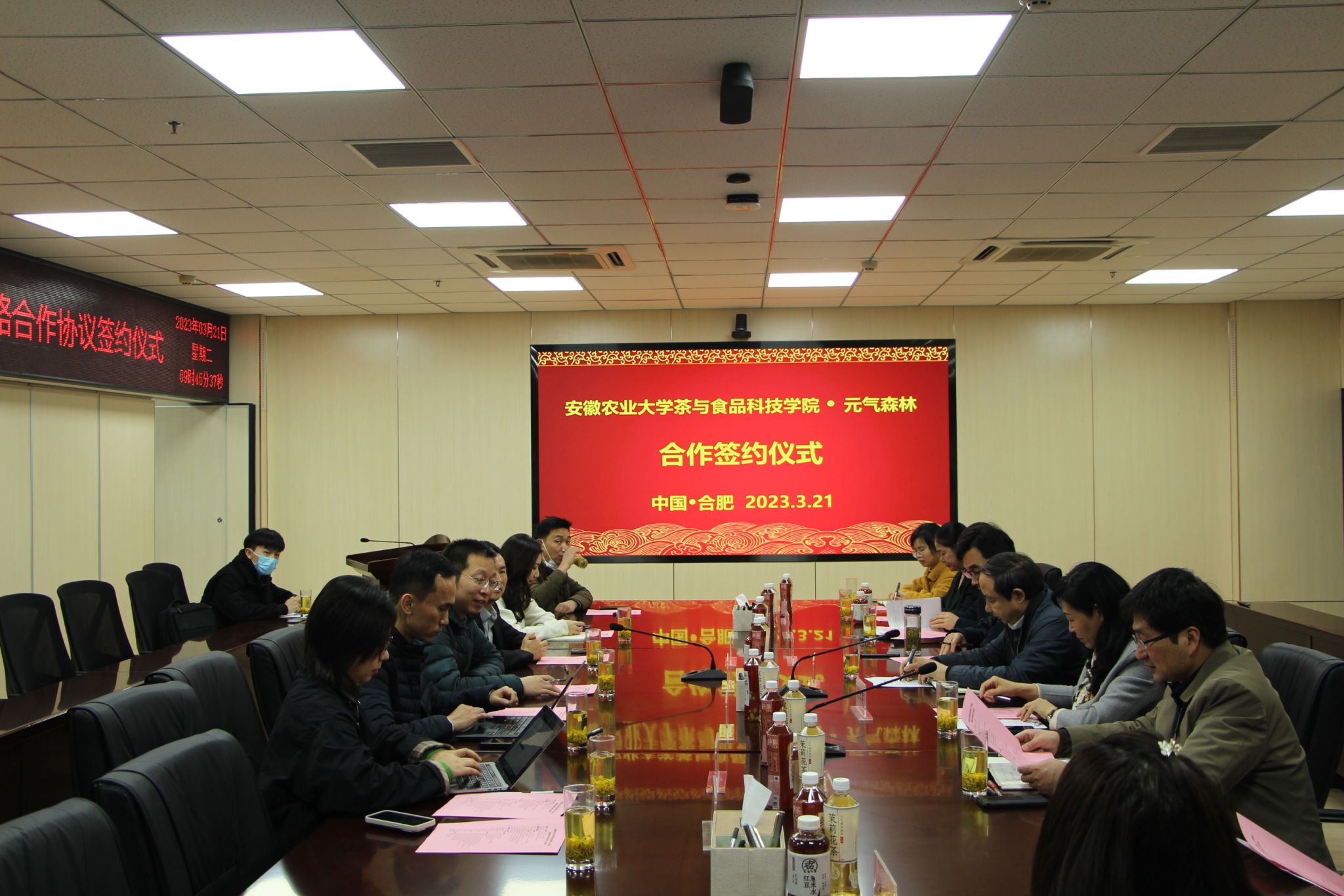本网讯 3月21日,茶与食品科技学院与元气森林正式签署战略合作协议。校新农村发展研究院常务副院长王华君、院党委书记唐红萍和茶学国重室常务副主任韦朝领及相关教授,元气森林研究院院长王雪刚、元气森林副总裁葛隽戎等出席签约仪式。沈周高、王雪刚分别代表院企双方签署了战略合作协议。