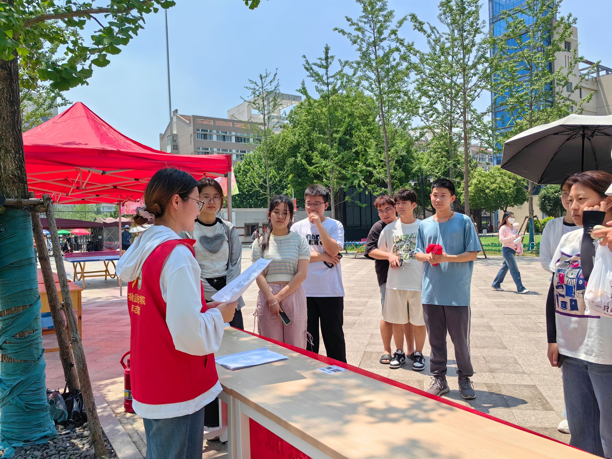 活动中,志愿者们通过摆放展台、现场咨询、发放宣传单等形式普及食品安全知识。在活动展台现场,志愿者们围绕健康饮食、营养健康、守护舌尖上的安全等内容进行了志愿服务、咨询与交流,并与同学们进行了深入互动,对同学们提出的问题给予了耐心细致专业的解答。