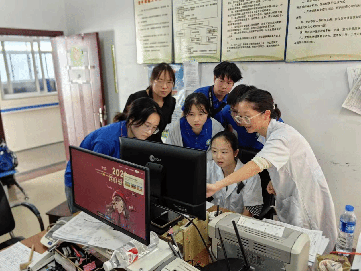 7月19日,实践团成员来到柯村卫生院,卫生院是农村三级医疗预防保健网的枢纽,是保障农民群众身体健康的重要屏障。在卫生院工作人员的带领下,成员们深入了解了当地老年人基础病的管理控制情况:高血压的规范管理率已达97%,血压控制率达94%,糖尿病规范管理率达94%。同时,卫生院针对不同年龄段婴幼儿进行不同项目的体检,并且给出对婴儿早期教育、营养膳食、疾病防治、护理方面的建议。在与医护人员的深入交流中,成员们深刻认识到农村医疗卫生工作的重要性,纷纷表示将利用所学知识,为提升村民健康意识贡献自己的力量。