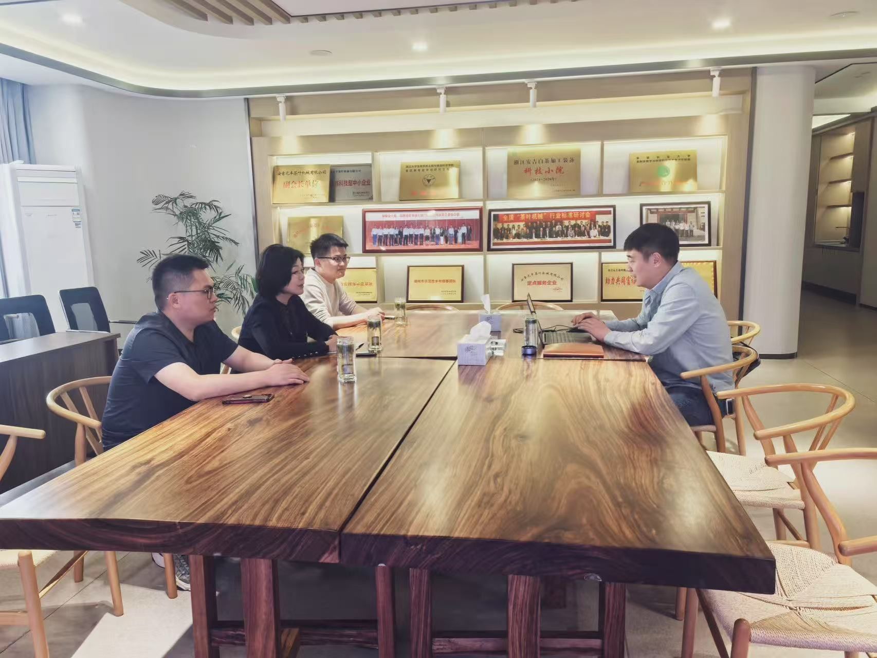 在安吉元丰茶叶机械有限公司,邓威威一行参观了智能化生产车间、技术研发中心,深入了解茶叶机械装备的自动化生产流程及数字化技术应用。双方围绕“人才培养、技术创新、成果转化”等主题展开座谈。企业负责人介绍了当前茶机行业向智能化、绿色化转型的趋势,希望与学院在智能装备研发、制茶工艺优化、茶园数字化管理等领域开展深度合作。邓威威表示,访企拓岗是学院落实高校服务产业发展的重要举措,学院将以企业需求为导向,持续优化课程体系,培养更多适应产业升级的高素质人才。