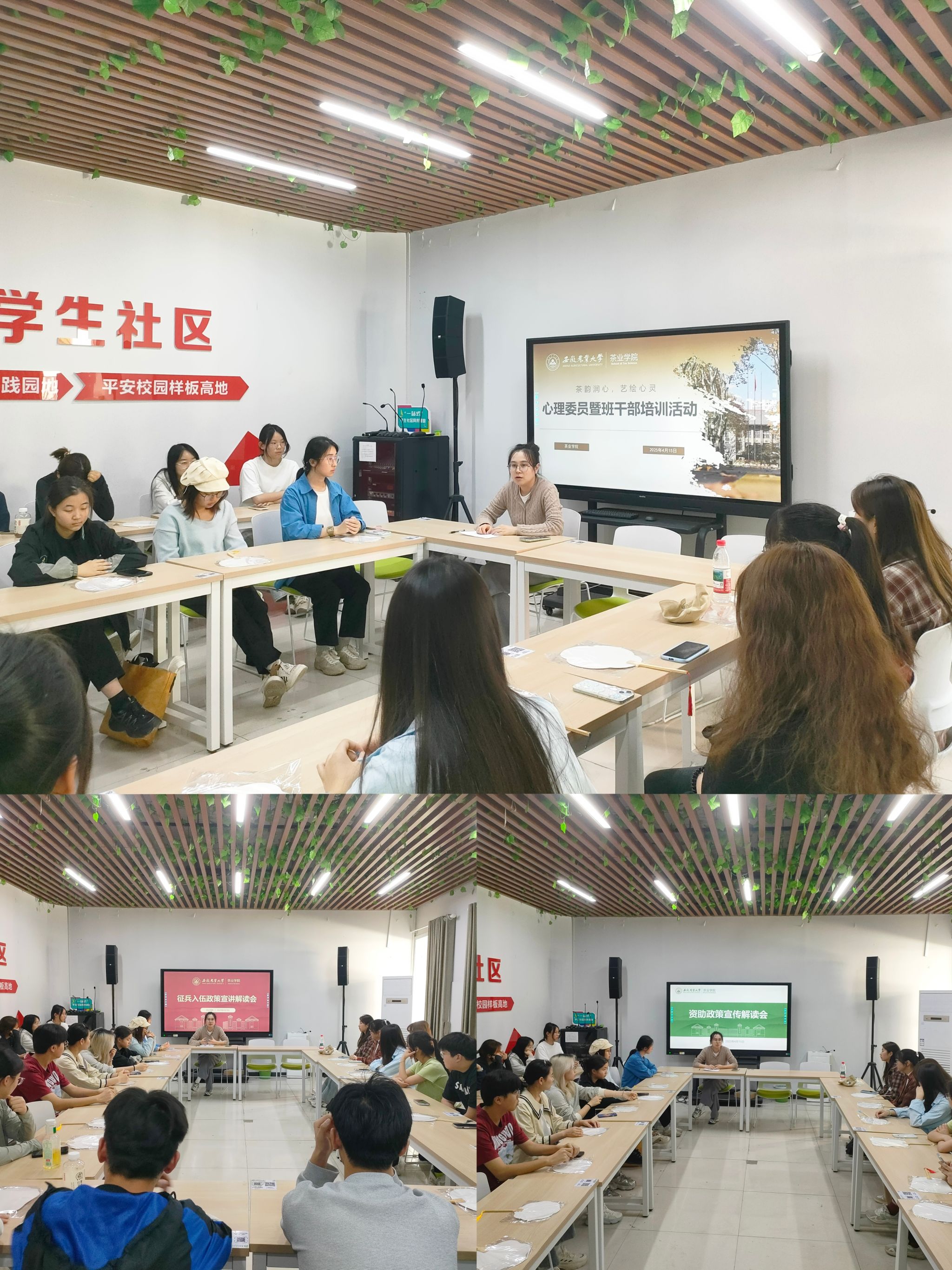 本网讯 2025年4月15日,安徽农业大学茶业学院在“一站式”学生社区北区开展了系列主题活动,旨在构建立体化育人体系,培养“德智体美劳”全面发展的新时代青年。