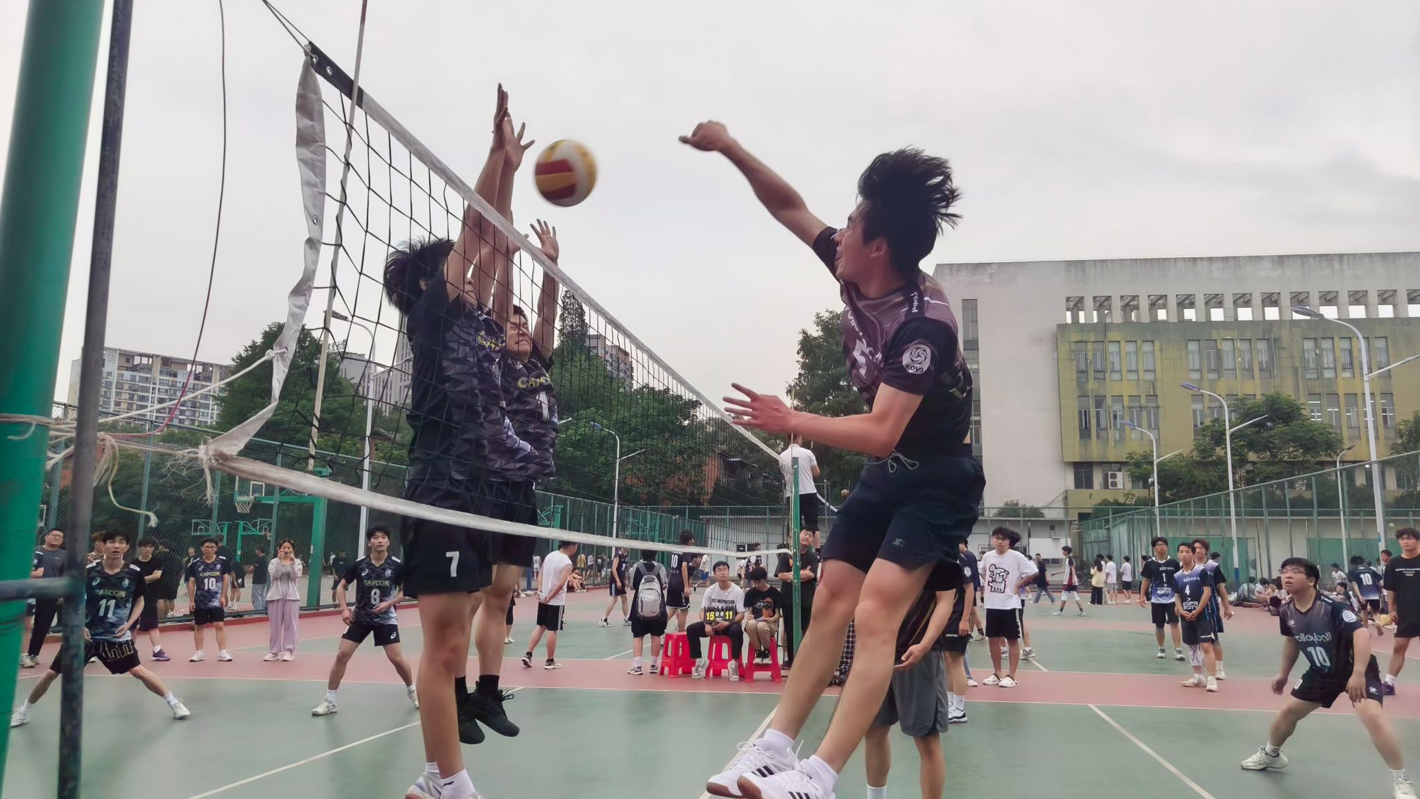 篮球联赛同样精彩纷呈,茶业学院男子篮球队的队员们在比赛中全力以赴。他们在日常训练中,针对不同的战术体系进行反复演练,不断提升个人技术和团队默契。赛场上,队员们积极跑位、精准投篮、强硬防守,每一次进攻和防守都展现出对胜利的渴望。尽管在赛程中遭遇了一些强劲对手,但队员们始终保持着高昂的斗志,最终获得男子组第八名的成绩。