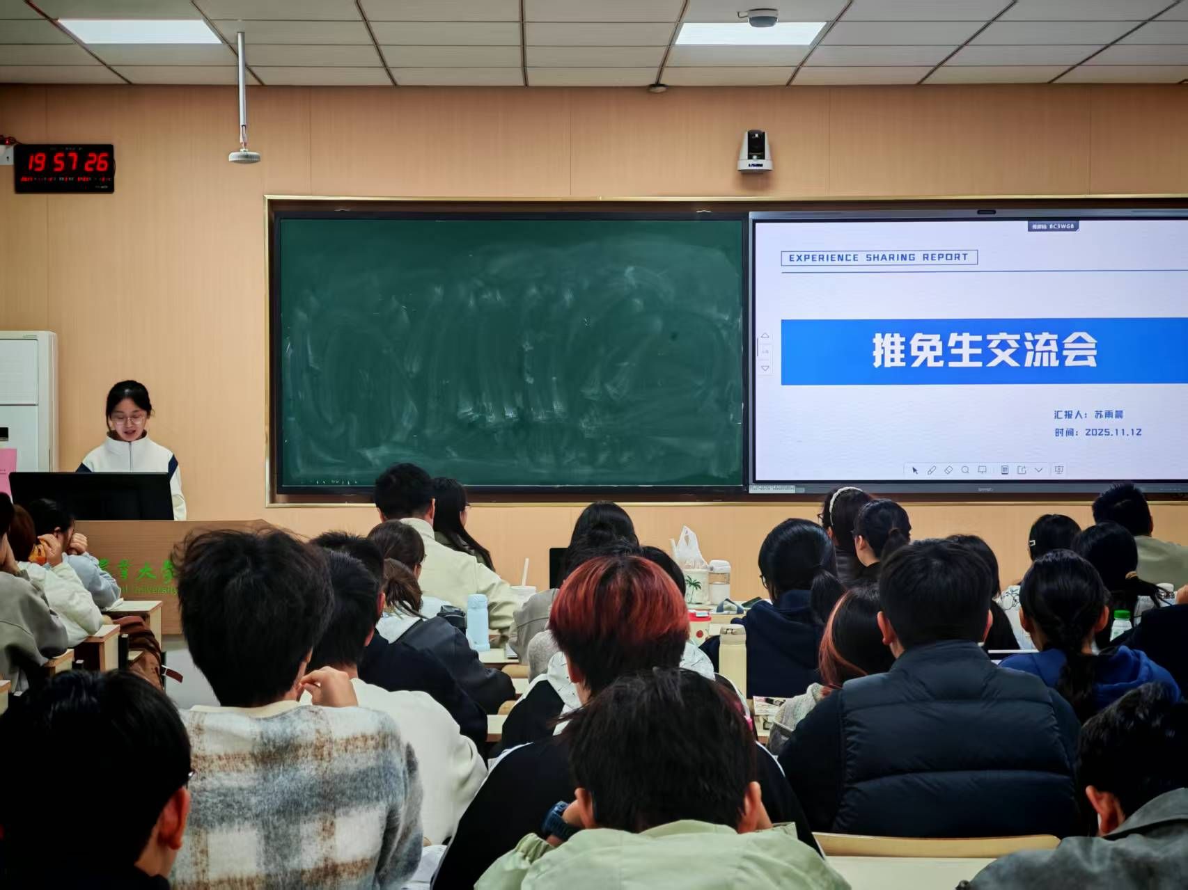 活动特别邀请两位推免成功的22级苏雨晨同学和22级罗欣平同学担任分享嘉宾。她们结合自身成长经历,聚焦新生普遍关注的大学学业规划、高效学习方法、科研入门路径、时间管理技巧、校园生活适应及推免政策解读等核心问题,生动分享了从初入校园的迷茫困惑到明确方向、稳步进阶的成长轨迹,为新生们提供了极具借鉴价值的实战经验。互动环节中,新生们踊跃提问、积极交流,学姐们逐一耐心细致解答,现场氛围热烈融洽。