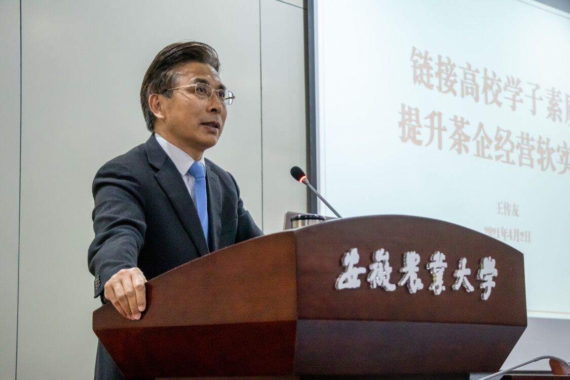 在本次报告会上,王传友从自己的求学和工作经历出发,就同学们关注的成长、规划、发展等热点问题与同学们分享了自己独特的看法,对同学们如何度过充实而有意义的大学生活、如何做好迈入社会前的准备等提出了宝贵的意见。王传友认为大学生要有坚定的理想信念、敢闯敢试的勇气、坚持不懈的精神;要珍惜大学时光,把握每一次机会,尝试各种可能,把自己的优势做到极致;要充实向上,提高自主学习能力,在不断学习和思考中享受成长的过程。同时还从茶学专业前景等角度对同学们的职业规划提出了建议,鼓励同学们努力学好理论知识,在实践实习中积极锻炼专业技能,要把习近平总书记关于“因茶致富、因茶兴业”“把茶叶这个产业做好”重要指示精神作为自己前行的动力,为做大做强茶产业奉献自己的力量。