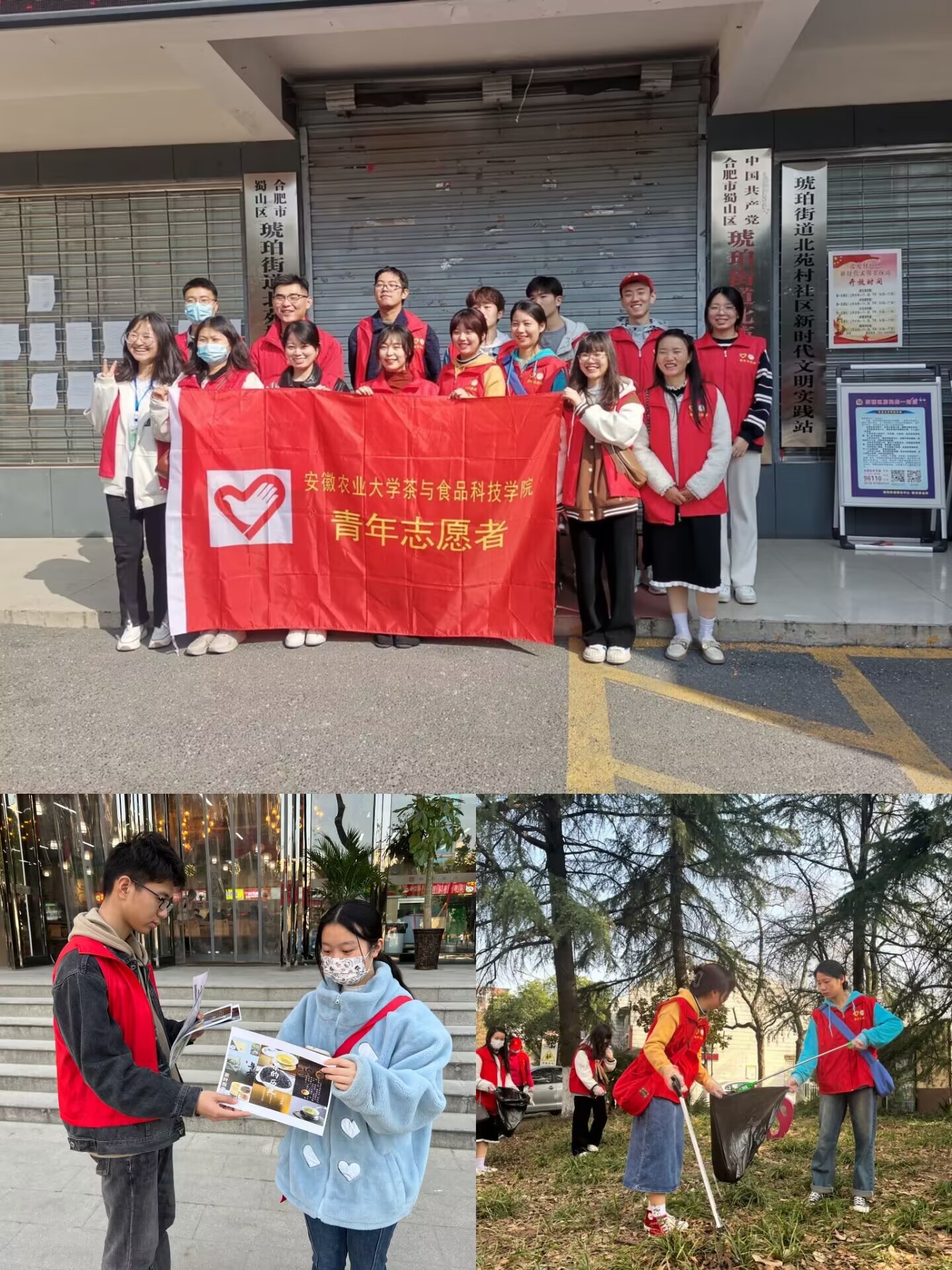 各年级专业立足实际,从自身出发,“立足身边的小事”开展了一系列志愿服务活动。志愿者们以茶业楼周围为起点,合理分工,用自带的塑料手套和垃圾袋,认真地捡拾茶业楼周围的垃圾,协助进行茶业楼前的自行车、电动车的摆放和整理。志愿者们在学校餐厅门口开展“光盘行动”宣传活动,引导学生就餐后清扫桌面、主动带走餐具,共同维护食堂环境和就餐秩序。