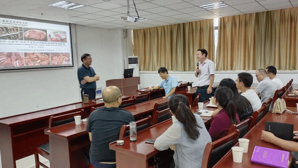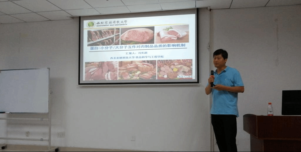本网讯 安徽农产品加工工程实验室聚焦食品科学与工程专业一流学科建设,积极落实平台教师走出去、知名专家请进来的活动。2021年7月10日邀请西北农林科技大学食品科学与工程学院冯宪超教授来实验室指导并在工科楼259会议室做题为《蛋白-小分子/大分子互作对肉制品品质的影响机制》的学术报告。报告由学院副院长周裔彬教授主持,相关教师和研究生共计百余人参加了学术交流。